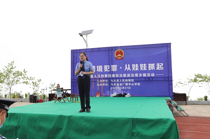 为了让抵边乡镇的未成年人能更好地掌握预防跨境违法犯罪知识,527日,马关县人民检察院、马关边境管理大队、马关县金厂镇中心学校联合举办打击跨境犯罪从娃娃抓起为主题的模拟法庭进边关的活动,活动邀请县政法委、县边管大队、县法院、县司法局、团县委、金厂镇人民政府的领导参加,以及金厂镇中心学校的578名师生参加本次动。