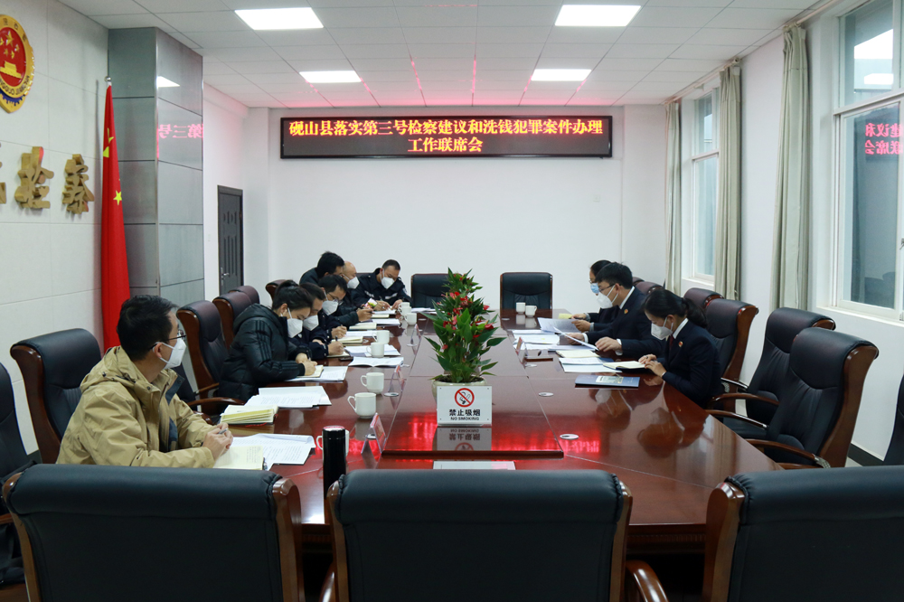 为推动最高检三号检察建议的贯彻落实,提升办理洗钱犯罪案件、“断卡”行动相关案件的能力,2022年12月27日,砚山县人民检察院组织召开砚山县落实三号检察建议和洗钱犯罪案件办理工作联席会,中国人民银行砚山县支行、县公安局、县法院参加会议。